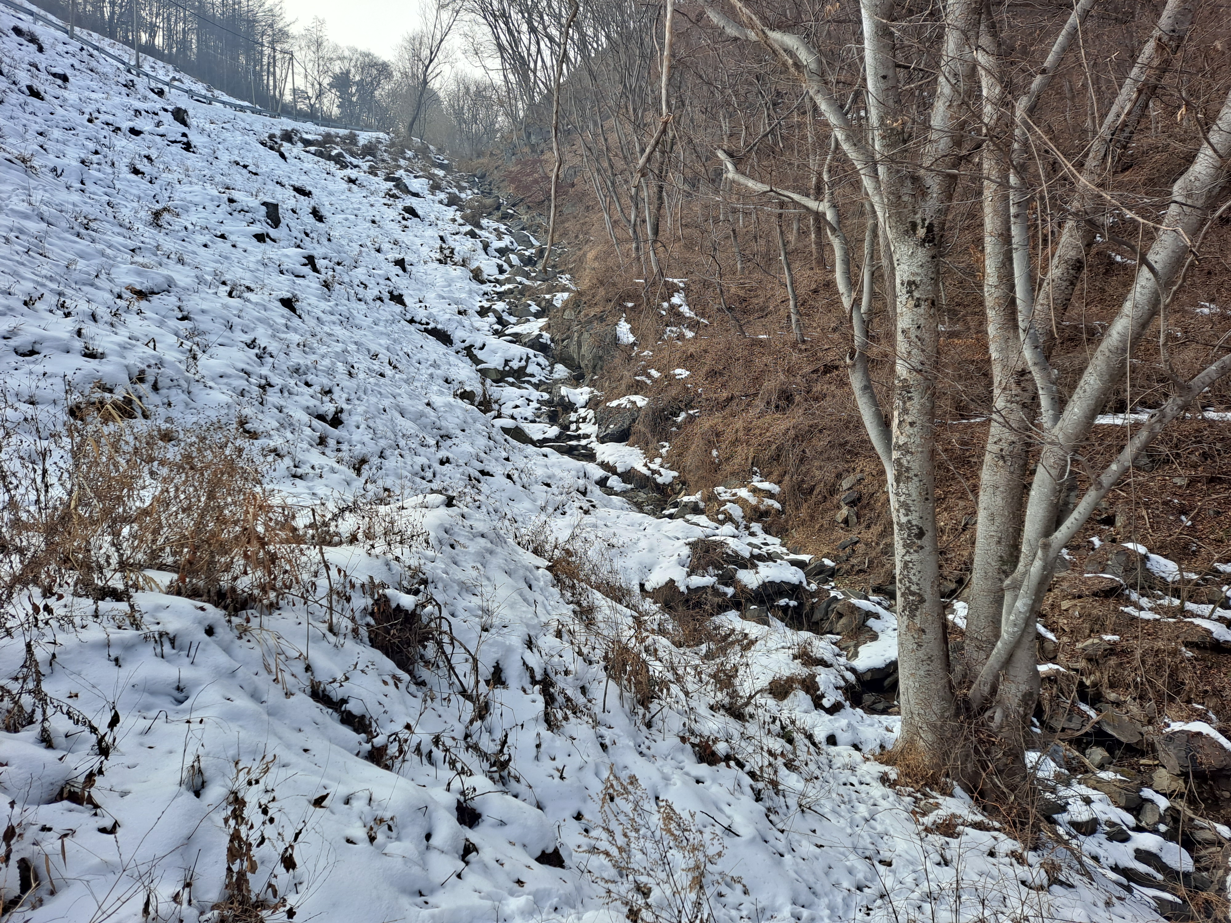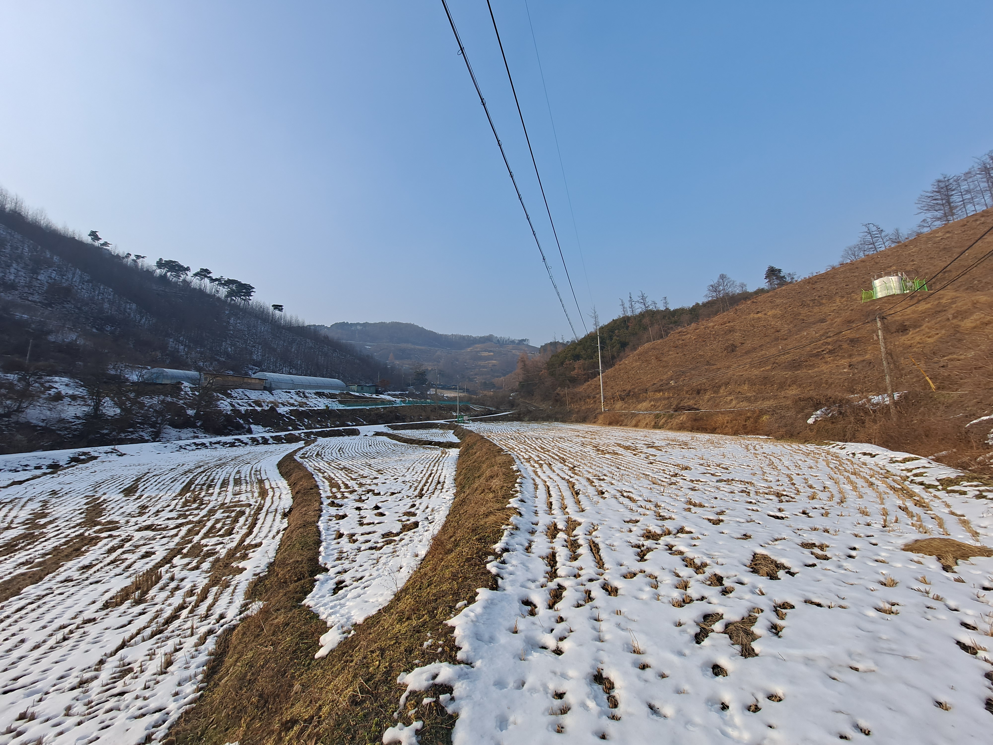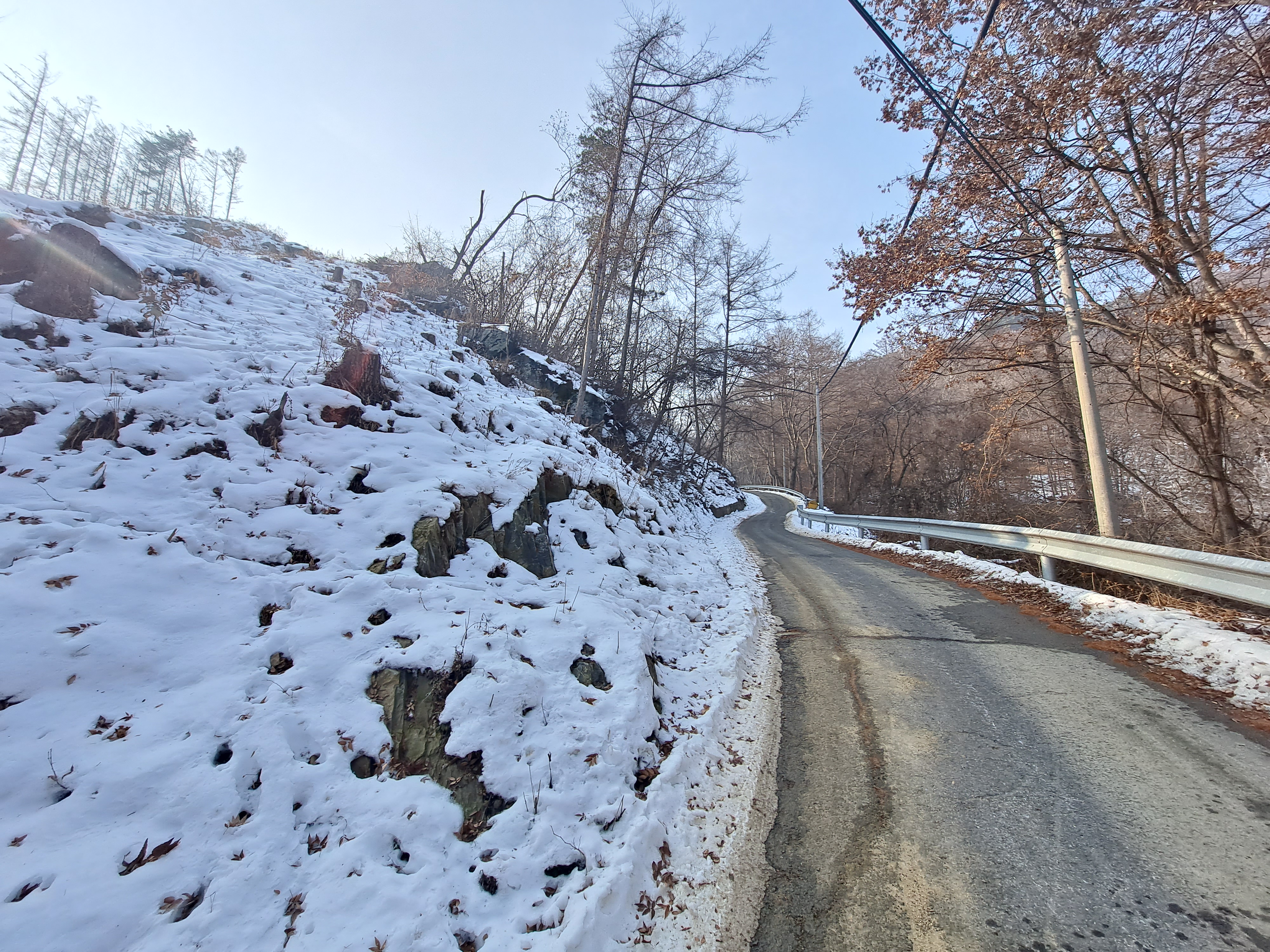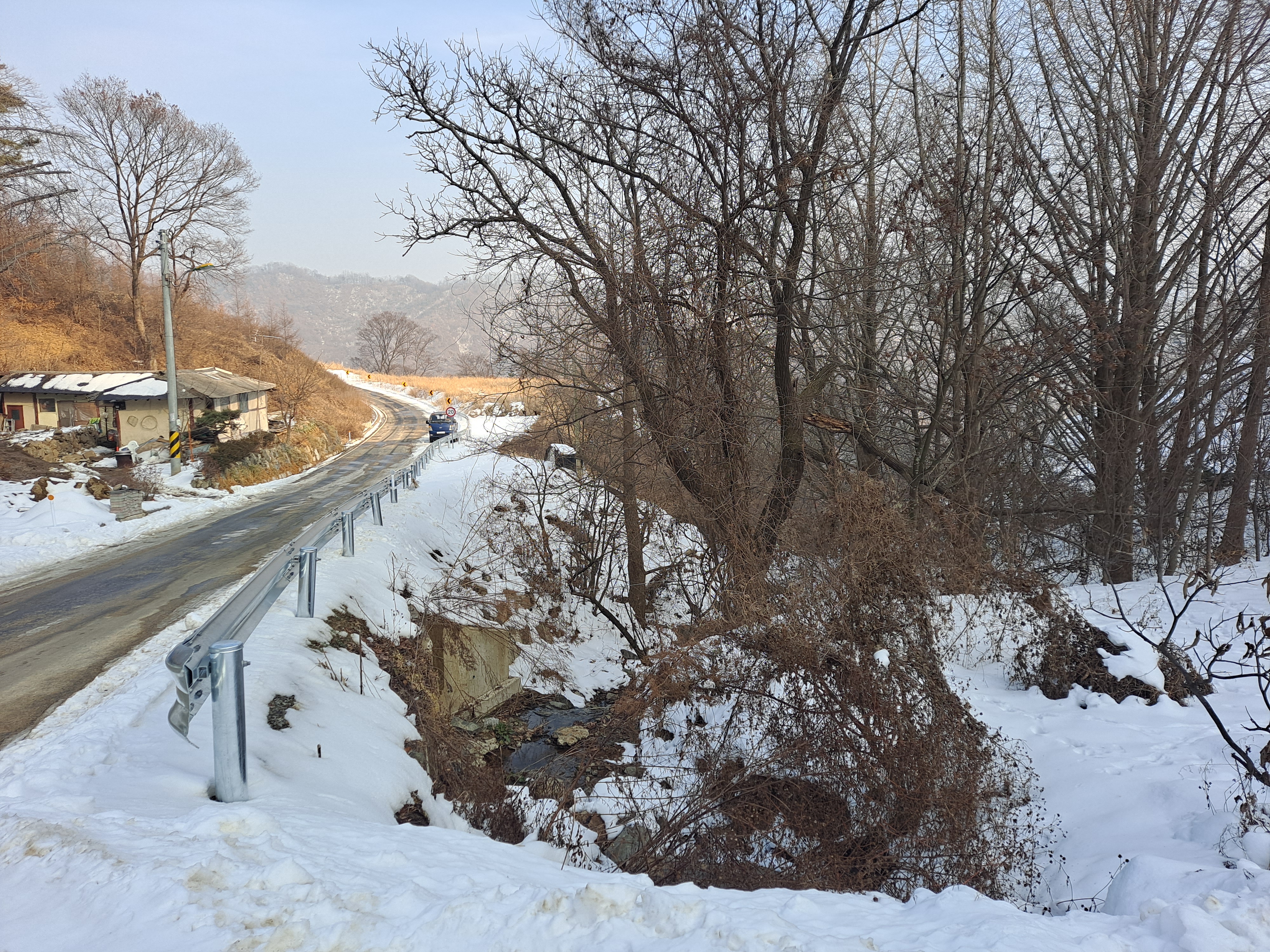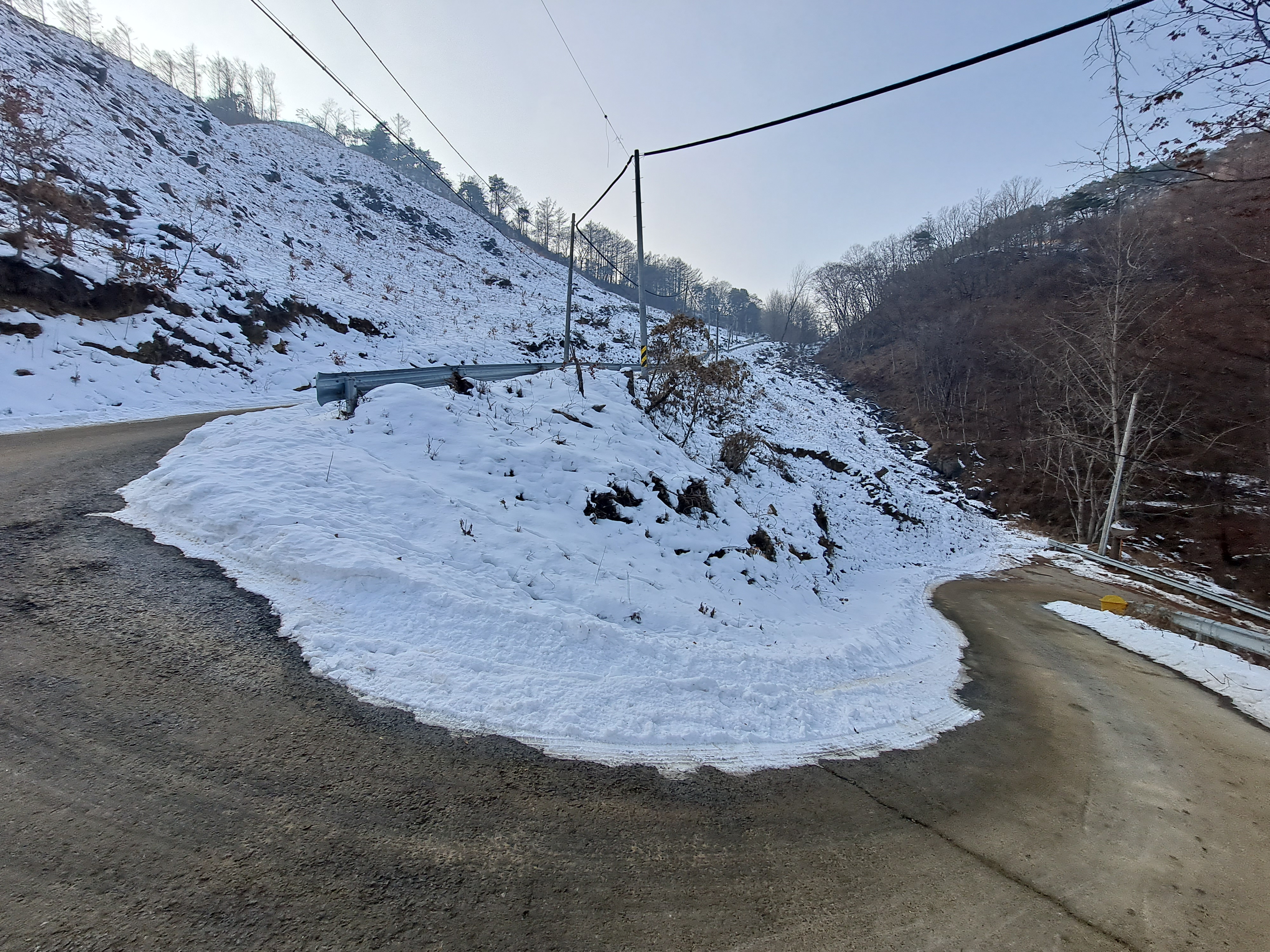 고개마루에 2022년 11월 개통된 산정말-전하울 도로가 보인다.