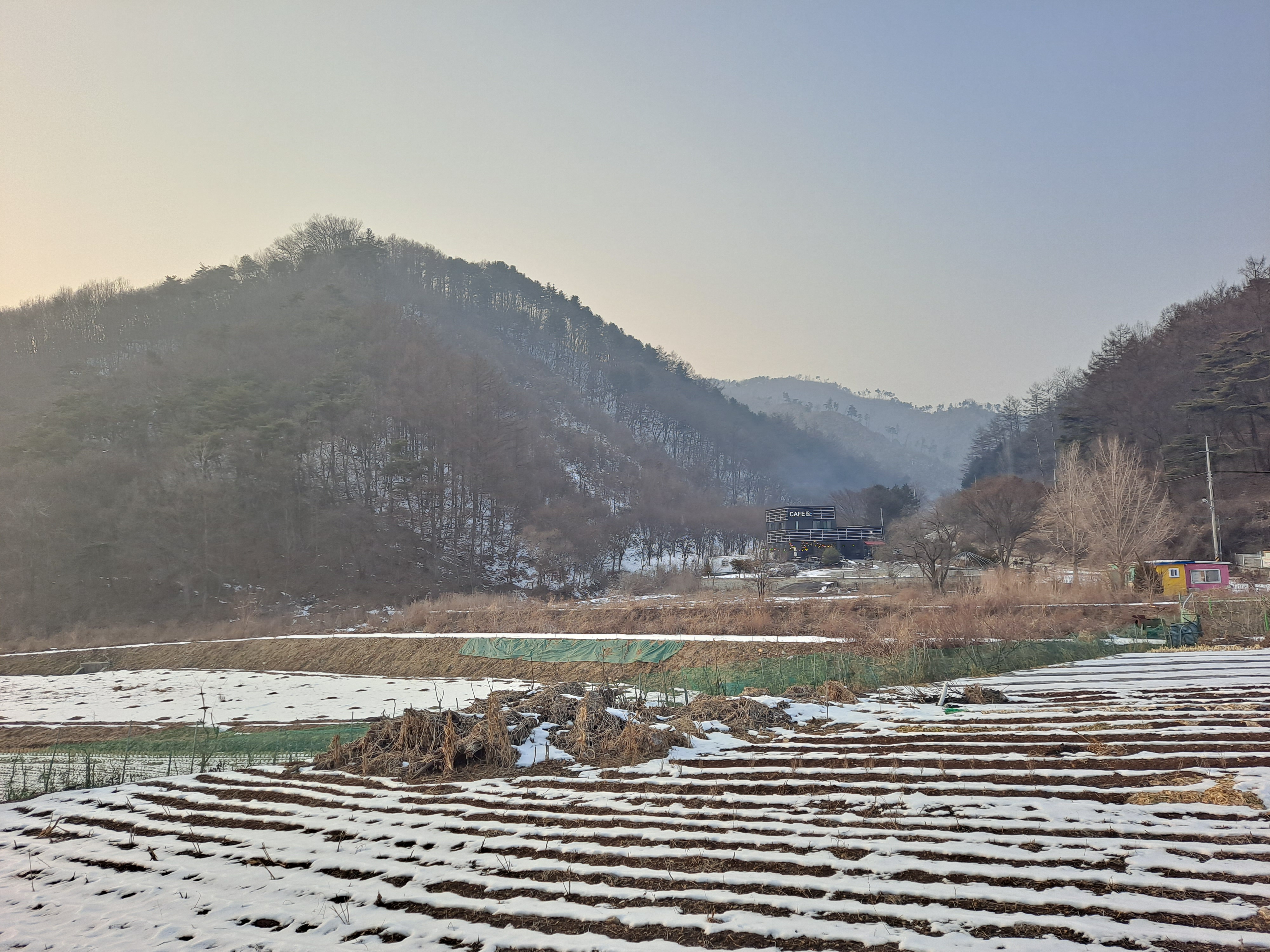 산정말 답사 후 추정리 초입 카페에 들려 따뜻한 카페라떼 한잔으로 추위를 달랜다.