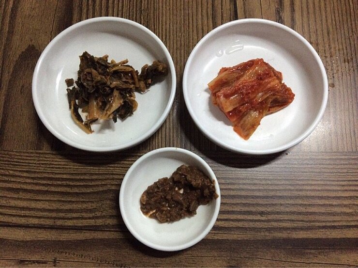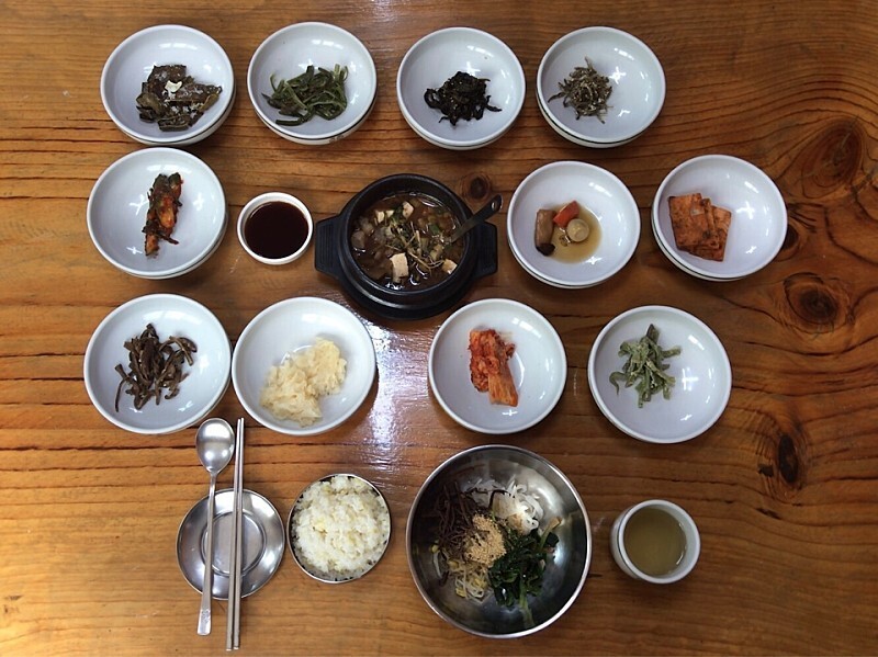 소금, 설탕에 버무린 바삭하고 짭짤한 감칠맛의 다시마 부각 튀김, 미역줄기볶음, 질깃하고 고소한 향의 아주까리 무침, 바싹하게 튀긴 후 볶아내 깨를 뿌린 고소한 멸치볶음, 매콤한 양념에 부추, 오이를 넣어 무친 시원한 오이무침, 깊은 짠맛과 은은한 단맛이 어우러진 조선간장, 달금한 간장에 조린 버섯·당근. 메추리알 조림, 시금한 김치를 넣어 부친 장떡, 말린 가지를 물에 불려 물기를 짜고 깨, 참기름 등을 넣어 삼삼하게 버무린 졸깃한 말린 가지나물 무침, 고소한 참기름, 소금간 살짝 한 사근사근 씹히는 흰목이버섯 무침, 시쿰하고 아삭한 김치, 들깻가루 넣어 볶은 오독오독 씹히는 궁채 나물무침, 대접에 깨, 참기름을 넣어 삼삼하게 무친 졸깃한 고사리나물, 무나물, 콩나물, 집된장, 참기름 넣어 버무린 달금한 맛, 구수하고 짭짤한 맛이 섞인 시금치 무침 등을 담고 깨를 뿌려 나온 비빔밥용 나물 등 다양한 식감과 색감, 맛이 어우러진 밑반찬이 식탁 위에 풍성하게 차려진다. 허투루 만든 음식이 없다.