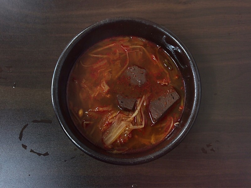 순대국밥은 삼삼한 간의 잡내 없이 끈적하고 시원한 국물에 막창 순대, 고기, 내장 등을 푸짐하게 담아 내준다. 새우젓, 매콤한 다진양념, 다진 청양고추는 기호에 맞게 추가한다. 김치, 깍두기, 데친 배추, 멸치볶음 등 기본 찬을 곁들여 먹는다.